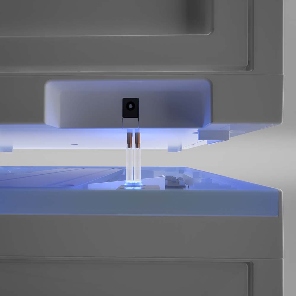 • Modular Integration: Users can arrange and stack these units to create custom display walls. The bottom electric contacts ensure that power is transmitted through the stack, maintaining a clean, cable-free aesthetic.